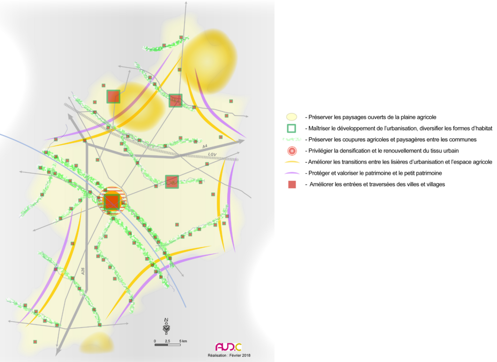 - L’affirmation de la valeur des grands paysages de Champagne et du rôle de la trame verte et bleue en adéquation avec la notion de villages “oasis”.