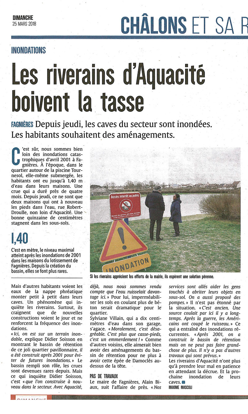 Les nappes de la craie et de la Marne, interconnectées, sont responsables de ce phénomène principalement en avril/mai, période durant laquelle elles sont particulièrement hautes. Victimes de ce phénomène, les communes de Châlons-en-Champagne et de Fagnières ont été déclarées en catastrophes naturelles respectivement en 1988 et 2001.